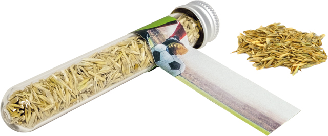 Beschreibung: Lassen Sie einen kleinen Sportplatz wachsen. Das nachhaltige Reagenzglas enthält Samen für einen echten Fußball-Rasen. Das Fähnchen kann im Standardmotiv mit einem Logo versehen oder, ebenfalls ab 250 Stück, individuell gestaltet werden.