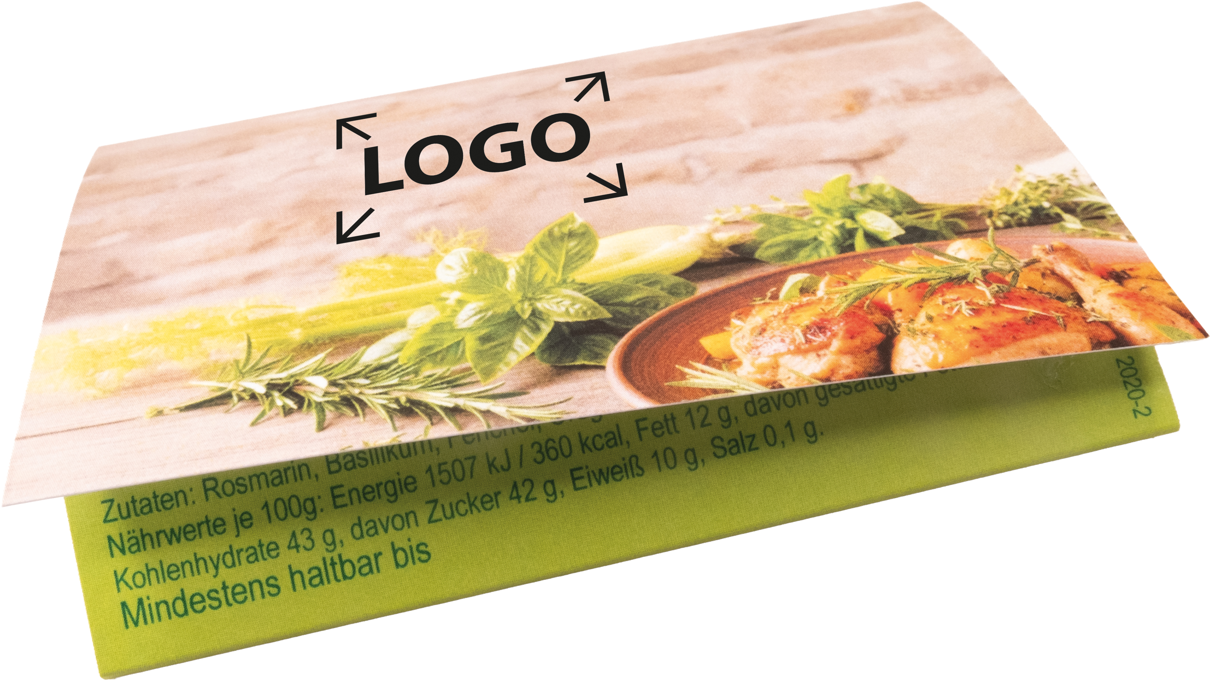 Beschreibung: Begeben Sie sich mit Ihren Kunden auf eine aromatische Reise durch die Provence. Unsere feine Geschmacksprobe Kräuter der Provence holt den Duft Frankreichs direkt in die Küche und weckt mediterrane Genussmomente. Setzen Sie Ihr Logo oder ein individuelles Kartendesign – ab 250 Stück – stilvoll in Szene und machen Sie dieses aromatische Giveaway zu einem geschmackvollen Werbeträger.
