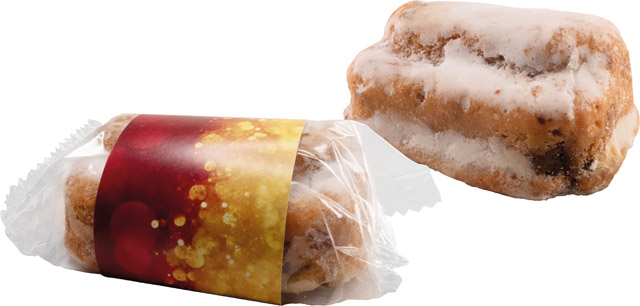 Beschreibung: Ein feiner Christstollen aus erlesenen Zutaten. Der Klassiker im Miniformat ist das perfekte Präsent in der Adventszeit. Ihr Logo findet Platz im Standardmotiv der Banderole. Alternativ kann, ebenfalls ab 250 Stück, die Banderole komplett personalisiert werden.