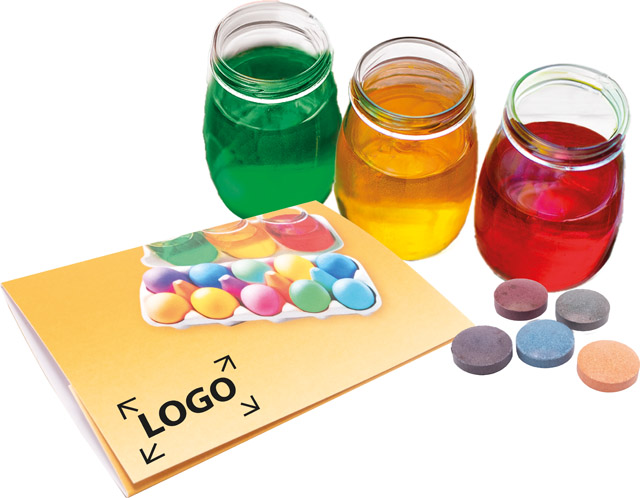 Beschreibung: Viele, viele bunte Eier können mit diesen Farbtabletten in der Osterzeit gestaltet werden. Das Klappkärtchen eignet sich hervorragend für Ihre Ostermailingaktion. Die Karte kann ab 250 Stück mit Ihrem Logo versehen oder individuell gestaltet werden.
