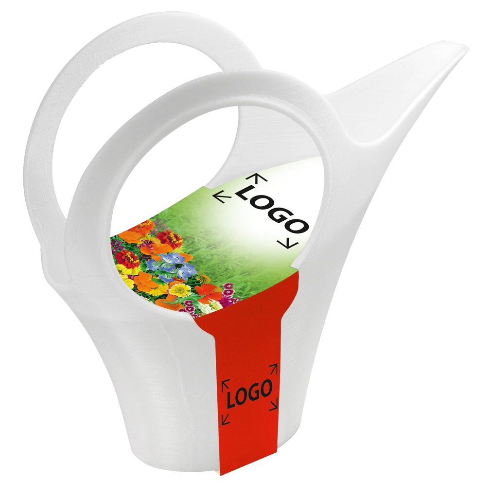 Beschreibung: Die Design-Gießkanne aus dem Hause Koziol. Als Anzuchtbehältnis mit Töpfchen, Erdtablette und Samen. Nach dem Umtopfen der gewachsenen Pflanze nutzen Sie die Funktion als Design-Gießkanne oder als Blumenvase, sowie als Sammelbehältnis für Utensilien. Standardfarben wählbar in weiß, grün, gelb oder orange. Wunschfarben auf Anfrage. Die umlaufende Banderole dient als Werbeträger. Platz im Standardmotiv für Ihren Eindruck oder eine eigene Gestaltung ab 250 Stück.