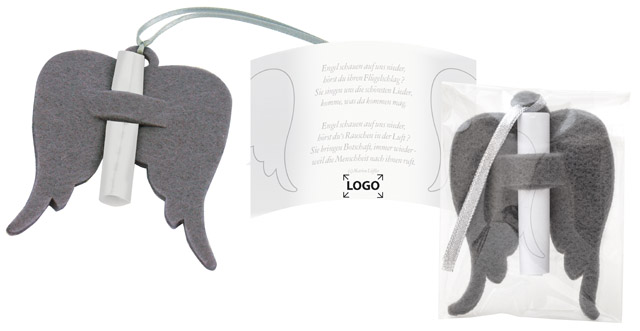 Beschreibung: Originelle Grüße zu Weihnachten lassen sich mit dieser kreativen Weihnachtskarte übermitteln. Die Engelflügel aus Filz beinhalten die Weihnachtsbotschaft und überbringen geflügelte Weihnachtsgrüße. Platz für Ihren Werbeeindruck ist auf dem Standardmotiv der Karte oder eine eigene Gestaltung, jeweils ab 250 Stück.