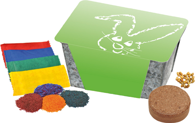 Beschreibung: Ein komplettes Set Osterset zum Überreichen. In der Zinkwanne kann das Ostergras wachsen und mit den vier Eierfarben können die gekochten Ostereier bunt eingefärbt werden. Die umlaufende Banderole bietet ausreichend Platz für Ihre Werbebotschaft. Eine eigene Gestaltung der Banderole ist ebenfalls ab 250 Stück möglich.