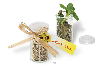 Beschreibung: Ein Gewächshaus im Miniaturformat, das auch auf dem Schreibtisch oder auf der Fensterbank stehen kann. Im Gläschen ist bereits das Wachstumsgranulat mit den Samenkörnern enthalten. Auf der Anhängekarte ist die Anleitung bereits aufgedruckt. Auf der Vorderseite ist ausreichend Platz für Ihren Werbeeindruck. Auch eine eigene Gestaltung ist ab 250 Stück möglich.
