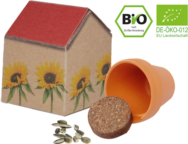 Beschreibung: Ein Natur-Häuschen für Ihre Werbebotschaft. Natürliche Rohstoffe, wie Naturpapier, Tontopf und Bio-Samen lassen ein gelungenes natürliches Giveaway entstehen. Das Häuschen kann mit Ihrem Eindruck versehen werden oder, ebenfalls ab 250 Stück, individuell gestaltet werden.