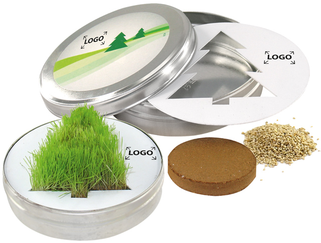 Beschreibung: Der etwas andere Tannenbaum zu Weihnachten. Dieser wächst mit Hilfe einer Tannenbaum-Schablone aus Gras-Samen. Einfach den Samen in die gestanzten Aussparungen der Schablone einsäen, vorsichtig wässern und bald entsteht der Tannenbaum. Den Rasenschnitt der Gras-Pflanzen bald vornehmen, damit die Konturen gut sichtbar bleiben. Alles ist für die Anzucht praktisch in einer Metalldose verpackt. Ein eigenes Logo der Wachstumsschablone ist ab 1.000 Stück möglich. Der Deckelaufkleber bietet Platz für Ihren Werbeeindruck oder eine eigene Gestaltung, jeweils ab 250 Stück. Ein Tampondruck direkt auf der Wachstumsschablone ist möglich.