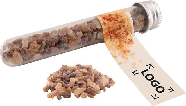 Beschreibung: Ein Reagenzglas gefüllt mit Kandiszucker. Für die Teeliebhaber unter Ihren Kunden ist es die perfekte Abrundung einer genussvollen Tasse Tee. Das Fähnchen kann mit Ihrem Werbeeindruck versehen werden oder, ebenfalls ab 250 Stück, individuell gestaltet werden.