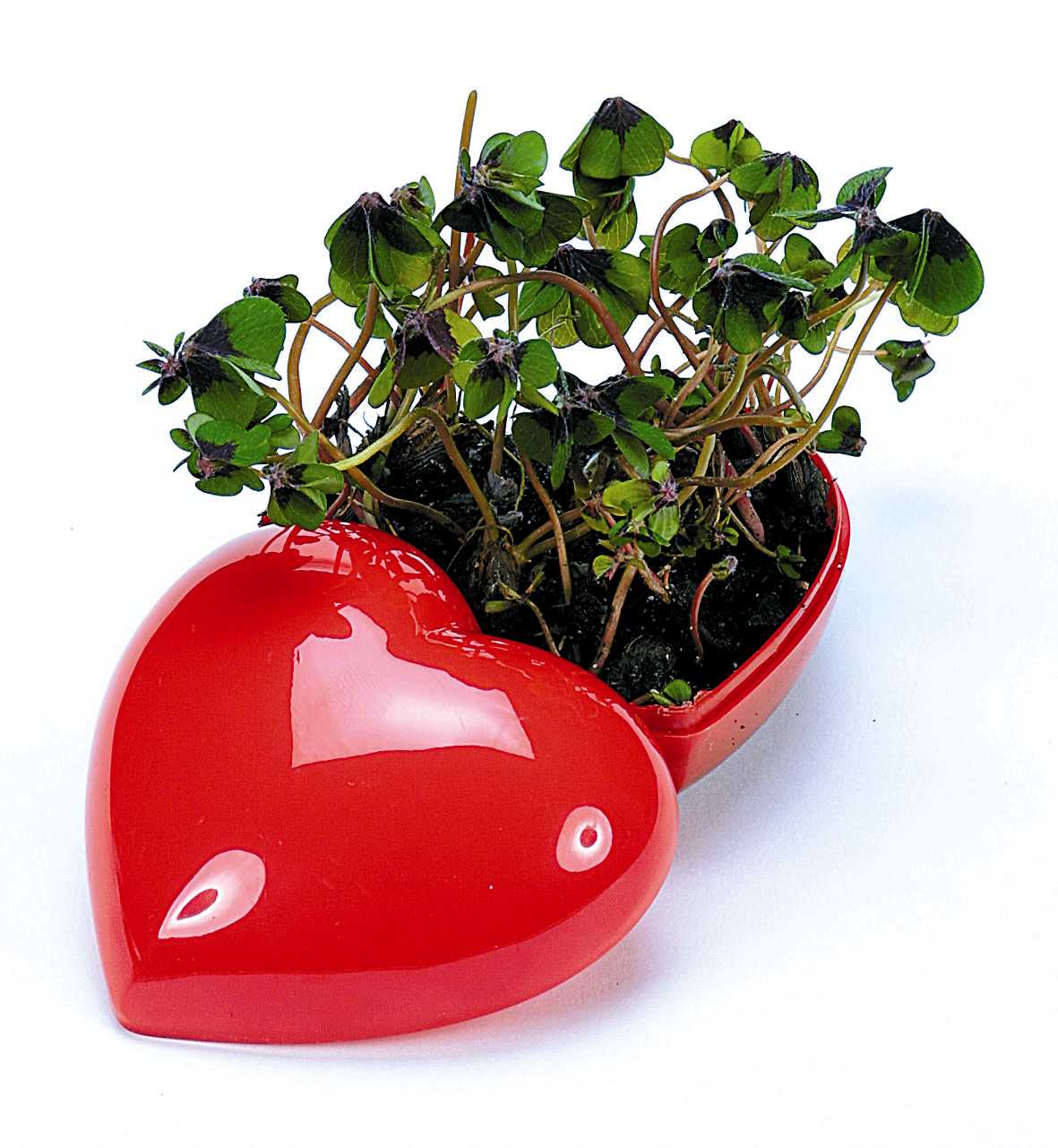 Beschreibung: Ein ansprechendes rotes Herz aus Kuststoff, der Klassiker für den Schreibtisch oder die Fensterbank. Einfach die Zwiebeln nach Anleitung im Unterteil des Herzens einpflanzen. Die Glücksbotschaft mit echtem vierblättrigem Glücksklee wächst schon nach kurzer Zeit heran. Platz für den Werbedruck (ab 100 Stück) ist auf dem Deckel als Tampondruck.