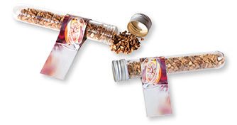 Beschreibung: Das Reagenzglas ist eine pfiffige Idee Glühwein-Gewürz (ca. 6 g) zu verpacken. Mit dem Schraubdeckel kann es immer wieder neu gefüllt werden. Platz für den Werbedruck ist auf dem Standardmotiv des Fähnchens oder eine eigene Gestaltung, jeweils bereits ab 250 Stück.