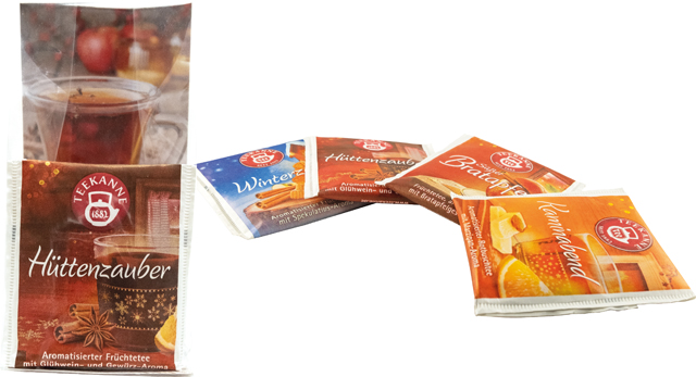 Inhalt: 4 Teebeuteln, je ca. 2,5 g (Winterzeit, Hüttenzauber, Süßer Bratapfel, Kaminabend)