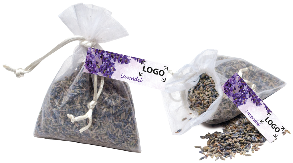 Beschreibung: Die duftenden Lavendelblüten sind immer ein angenehmes Präsent zum Überreichen. Die qualitativ hochwertigen Blüten finden vielseitige Verwendung. Sie können in der Kosmetik eingesetzt werden oder dienen als Dufterfrischer an vielen Orten. Platz für den Werbedruck ist im Standardmotiv des Anhängekärtchens oder eine eigene Gestaltung des Kärtchens, jeweils ab 250 Stück.